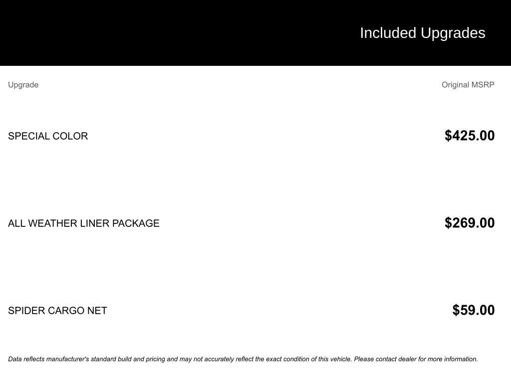 The Manufacturer's Suggested Retail Price excludes tax, title, license, dealer fees and optional equipment. Dealer sets final price.