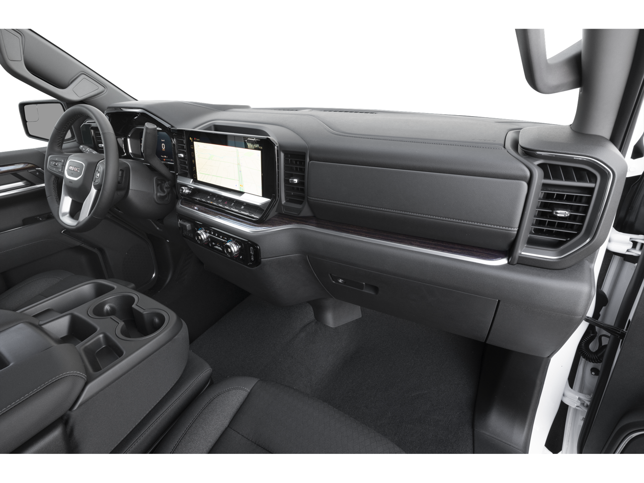SLT Convenience Package: Ventilated Driver and Front Passenger Seats; Power Rake and Telescoping Steering Column; Premium Bose 7-Speaker Sound System; Floor-Mounted Center Console; Wireless Charging; Front Bucket Seats. SLT Premium Plus Package. ProGrade Trailering System: In-Vehicle Trailering System App; Hitch View. Sierra Safety Plus Package: Rear Cross Traffic Braking; HD Surround Vision; Trailer Side Blind Zone Alert; Rear Pedestrian Detection; Ultrasonic Front and Rear Park Assist; Safety Alert Seat; Trailer Camera Provisions. Preferred Equipment Group 4SA: HD Rear Vision Camera; LED Cargo Area Lighting; Remote Vehicle Starter System; Electric Rear-Window Defogger; 5.3L EcoTec3 V8 Engine; Theft Deterrent System (unauthorized Entry); Chrome Header and Chrome Grille Insert Bars; 170 Amp Alternator; Auxiliary External Transmission Oil Cooler; Front Rain-Sensing Wipers; GMC Pro Safety; Trailering Package; 120-Volt Interior Power Outlet; 2 Charge/data USB Ports; Steering Wheel Audio Controls; 2 type-C Charge-Only Rear USB Ports; Color-Keyed Carpeting Floor Covering; OnStar Services Capable; Power Front Passenger Windows with Express Up/down; Deep-Tinted Glass; 6-Speaker Audio