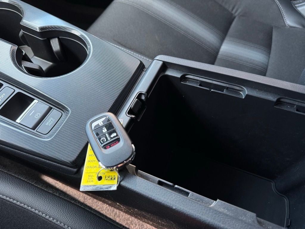 Black w/Cloth/Leatherette Seating Surfaces, Adaptive Cruise Control: Adaptive Cruise Control (ACC) with Low-Speed Follow, Apple CarPlay/Android Auto, Automatic temperature control, Blind Spot Information (BSI) System warning, Exterior Parking Camera Rear, Rear window defroster, Remote keyless entry, Steering wheel mounted audio controls, 4-Wheel Disc Brakes, 8 Speakers, ABS brakes, Air Conditioning, Alloy wheels, AM/FM radio, Auto High-beam Headlights, Brake assist, Bumpers: body-color, Cloth/Leatherette Seating Surfaces, Delay-off headlights, Driver door bin, Driver vanity mirror, Dual front impact airbags, Dual front side impact airbags, Electronic Stability Control, Emergency communication system: HondaLink, Four wheel independent suspension, Front anti-roll bar, Front Bucket Seats, Front Center Armrest, Front reading lights, Fully automatic headlights, Heated door mirrors, Illuminated entry, Knee airbag, Leather Shift Knob, Leather steering wheel, Low tire pressure warning, Occupant sensing airbag, Outside temperature display, Overhead airbag, Panic alarm, Passenger door bin, Passenger vanity mirror, Power door mirrors, Power steering, Power windows, Radio data system, Radio: 180-Watt Audio System, Rear anti-roll bar, Rear seat center armrest, Rear side impact airbag, Security system, Speed control, Speed-sensing steering, Split folding rear seat, Tachometer, Telescoping steering wheel, Tilt steering wheel, Traction control, Trip computer, Wheels: 18 Gloss Black Alloy, Black w/Cloth/Leatherette Seating Surfaces, Adaptive Cruise Control: Adaptive Cruise Control (ACC) with Low-Speed Follow, Apple CarPlay/Android Auto, Automatic temperature control, Blind Spot Information (BSI) System warning, Exterior Parking Camera Rear, Rear window defroster, Remote keyless entry, Steering wheel mounted audio controls.