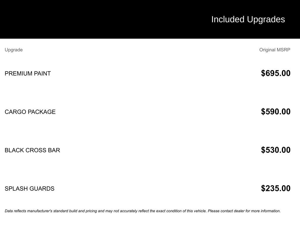 The Manufacturer's Suggested Retail Price excludes tax, title, license, dealer fees and optional equipment. Dealer sets final price.