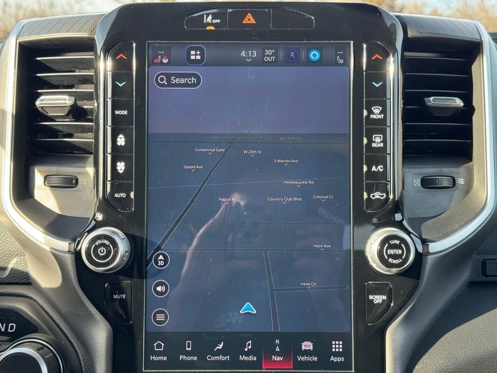 Certified Pre-Owned Gold Certified, 115V Auxiliary Power Outlet, 115V Auxiliary Rear Power Outlet, 12 Touchscreen Display, 2nd Row In Floor Storage Bins, 400W Inverter, 4G LTE Wi-Fi Hot Spot, 9 Amplified Speakers w/Subwoofer, Air Conditioning ATC w/Dual Zone Control, Apple CarPlay, Auto Power-Folding Mirrors, Auto-Dimming Exterior Driver Mirror, Auto-Dimming Rear-View Mirror, Big Horn Level 2 Equipment Group, Black Exterior Mirrors, Black Premium Power Mirrors, Cluster 7.0 TFT Color Display, Configurable Drive Mode, Connected Travel & Traffic Services, Connectivity - US/Canada, Convex Wide-Angle Exterior Mirror Insert, Exterior Mirrors Courtesy Lamps, Exterior Mirrors w/Heating Element, Exterior Mirrors w/Supplemental Signals, Glove Box Lamp, Google Android Auto, GPS Antenna Input, GPS Navigation, HD Radio, Heated Front Seats, Heated Steering Wheel, Integrated Voice Command w/Bluetooth®, Leather Wrapped Steering Wheel, LED Dome Lamp w/On/Off Switch, LED Footwell Lighting, Media Hub w/2 Charge Only USBs, Overhead LED Lamps, Power 2-Way Driver Lumbar Adjust, Power Adjust 8-Way Driver Seat, Power Adjustable Pedals, Premium Overhead Console, Quick Order Package 21Z Big Horn, Radio: Uconnect 5 Nav w/12.0 Display, Rear Power Sliding Window, Rear Window Defroster, Remote Tailgate Release, Security Alarm, SiriusXM w/360L, Steering Wheel Mounted Audio Controls, Sun Visors w/Illuminated Vanity Mirrors, Universal Garage Door Opener, USB Host Flip, 3 Rear Seat Head Restraints, 4 Way Front Headrests, 4-Wheel Disc Brakes, 6 Speakers, ABS brakes, Air Conditioning, Alloy wheels, AM/FM radio, Apple CarPlay/Android Auto, Auto High-beam Headlights, Brake assist, Bumpers: chrome, Cloth Bench Seat, Compass, Delay-off headlights, Driver door bin, Dual front impact airbags, Dual front side impact airbags, Electronic Stability Control, Front anti-roll bar, Front Center Armrest w/Storage, Front fog lights, Front License Plate Bracket, Front reading lights, Front Seat Back Map Pockets, Front wheel independent suspension, Fully automatic headlights, Heated door mirrors, Illuminated entry, Low tire pressure warning, Manual Adjust 4-Way Front Passenger Seat, Manual Folding Exterior Mirrors, Manufacturer's Statement of Origin, Occupant sensing airbag, Outside temperature display, Overhead airbag, Overhead console, Panic alarm, ParkView Rear Back-Up Camera, Passenger door bin, Passenger vanity mirror, Power door mirrors, Power steering, Power windows, Radio data system, Radio: Uconnect 5 W w/8.4 Display, RAM Grille Badge - Chrome, Rear 60/40 Folding Seat, Rear anti-roll bar, Rear seat center armrest, Rear step bumper, Remote keyless entry, Speed control, Split folding rear seat, Supplier Part Tracking (J-1), Tachometer, Telescoping steering wheel, Tilt steering wheel, Traction control, Trip computer, Variably intermittent wipers, Voltmeter, Wheels: 18 x 8 Cast-Aluminum Painted, 115V Auxiliary Power Outlet, 115V Auxiliary Rear Power Outlet, 12 Touchscreen Display, 2nd Row In Floor Storage Bins, 400W Inverter, 4G LTE Wi-Fi Hot Spot, 9 Amplified Speakers w/Subwoofer, Air Conditioning ATC w/Dual Zone Control, Apple CarPlay, Auto Power-Folding Mirrors, Auto-Dimming Exterior Driver Mirror, Auto-Dimming Rear-View Mirror, Big Horn Level 2 Equipment Group, Black Exterior