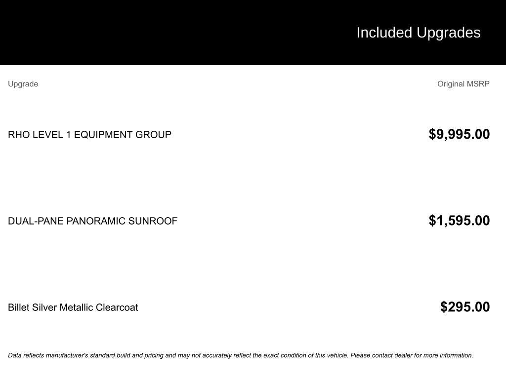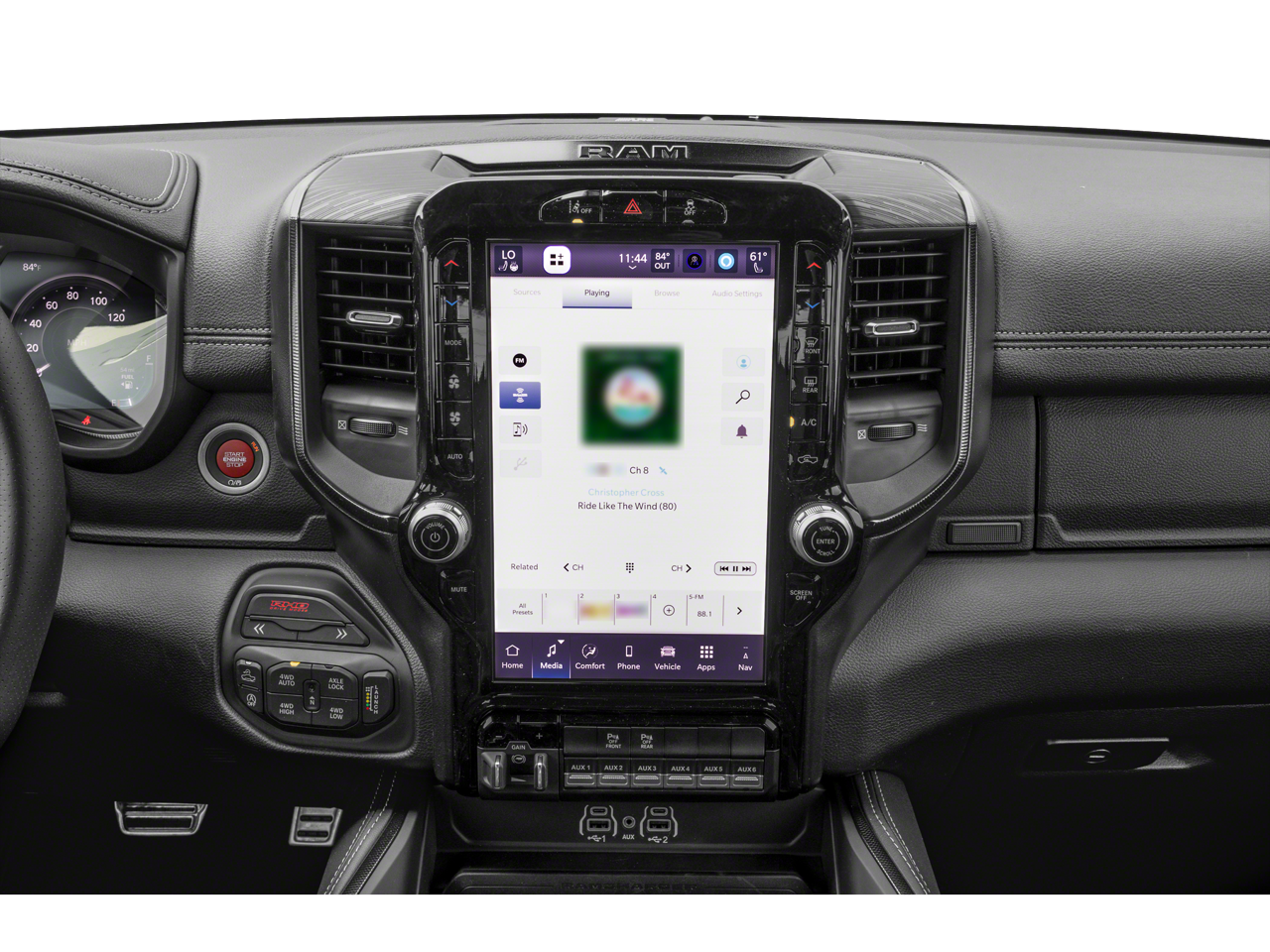 12-Way/1-Way Trailer Connector, 14.4 Touchscreen Display, 240 Amp Alternator, 4G LTE Wi-Fi Hot Spot, Apple CarPlay, Connected Travel & Traffic Services, Connectivity - US/Canada, Dome Dual LED Reading Lamp, Driver Power Seat Back Massage, Driver Seat Memory, Driver/Passenger Wrapped Assist Handles, Drowsy Driver Detection, Dual Wireless Charging Pad, Dual-Pane Panoramic Sunroof, Evasive Steer Assist, Exterior Mirrors w/Memory, Front Passenger Interactive Display, Front Passenger Power Seat Back Massage, Full Length Premium Upgraded Floor Console, Google Android Auto, GPS Navigation, Hands-Free Active Driving Assist System, harman/kardon 19 Speaker Premium Sound, HD Radio, Heads-Up Display, Heated Second Row Seats, Integrated Voice Command w/Bluetooth®, Intersection Collision Assist System, Leather/Carbon Flat-Bottom Steering Wheel, LED CHMSL Lamp, Luxury Front Door Trim Panel, Navigation System, Power Adjustable Pedals w/Memory, Power Tailgate, Premium Wrapped I/P Bezel, Quick Order Package 22Y RHO, Radio: Uconnect 5 Nav w/14.4 Display, Radio/Driver Seat/Mirrors/Pedals Memory, Rain Sensitive Windshield Wipers, Real Carbon Fiber Interior Accents, Rear 60/40 Folding Split Recline Seat, RHO Level 1 Equipment Group, Smartphone As A Key Capable, Surround View Camera System, Traffic Sign Recognition, USB Host Flip, Ventilated Front Seats, Ventilated Rear Seats, 10 Speakers, 3.92 Rear Axle Ratio, 4-Wheel Disc Brakes, ABS brakes, Adaptive suspension, Adjustable pedals, Air Conditioning, Alloy wheels, AM/FM radio: SiriusXM with 360L, Apple CarPlay/Android Auto, Auto High-beam Headlights, Auto Power-Folding Mirrors, Auto-dimming door mirrors, Auto-Dimming Exterior Driver Mirror, Auto-dimming Rear-View mirror, Automatic temperature control, Brake assist, Compass, Delay-off headlights, Driver door bin, Driver vanity mirror, Dual front impact airbags, Dual front side impact airbags, Electronic Stability Control, Exterior Mirrors Courtesy Lamps, Exterior Mirrors w/Heating Element, Exterior Mirrors w/Supplemental Signals, Flareside Box, Front anti-roll bar, Front Bucket Seats, Front Center Armrest w/Storage, Front dual zone A/C, Front fog lights, Front License Plate Bracket, Front reading lights, Front wheel independent suspension, Fully automatic headlights, Garage door transmitter, Heated door mirrors, Heated front seats, Heated steering wheel, Illuminated entry, Leather Shift Knob, Leather steering wheel, Leather Trimmed Bucket Seats, Low tire pressure warning, Manufacturer's Statement of Origin, Occupant sensing airbag, Outside temperature display, Overhead airbag, Overhead console, Panic alarm, ParkView Rear Back-Up Camera, Passenger door bin, Passenger vanity mirror, Power door mirrors, Power driver seat, Power passenger seat, Power steering, Power windows, Radio data system, Radio: Uconnect 5 Nav w/12.0 Display, Rear reading lights, Rear seat center armrest, Rear step bumper, Rear window defroster, Remote keyless entry, Security system, Speed control, Split folding rear seat, Sport steering wheel, Steering wheel mounted audio controls, Tachometer, Telescoping steering wheel, Tilt steering wheel, Traction control, Trip computer, Turn signal indicator mirrors, Variably intermittent wipers, Voltmeter, Wheels: 18 x 9 Black Paint/Polish Aluminum, Power Running Boards, 12-Way/1-Way Trailer Connector, 14.4 Touchscreen Display, 240 Amp Alternator, 4G LTE Wi-Fi Hot Spot, Apple CarPlay, Connected Travel & Traffic Services, Connectivity - US/Canada, Dome Dual LED Reading Lamp, Driver Power Seat Back Massage, Driver Seat Memory, Driver/Passenger Wrapped Assist Handles, Drowsy Driver Detection, Dual Wireless Charging Pad, Dual-Pane Panoramic Sunroof, Evasive Steer Assist, Exterior Mirrors w/Memory, Front Passenger Interactive Display, Front Passenger Power Seat Back Massage, Full Length Premium Upgraded Floor Console, G