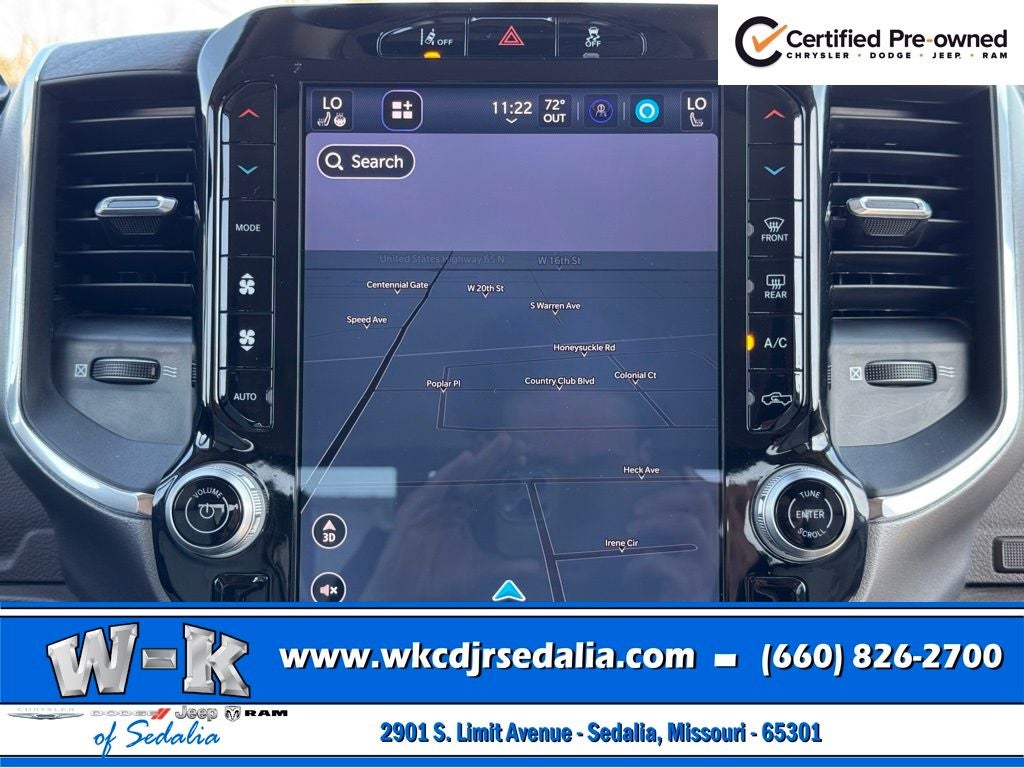 Certified Pre-Owned Gold Certified, #1 Seat Foam Cushion, 115V Auxiliary Rear Power Outlet, 2 Way Rear Headrest Seat, 2nd Row In Floor Storage Bins, 4 Way Front Headrests, Active Lane Management System, Adaptive Steering System, Auto Adjust In Reverse Exterior Mirrors, Auto Dimming Exterior Passenger Mirror, Auto High Beam Headlamp Control, Auto Power-Folding Mirrors, Auto-Dimming Exterior Mirrors, Bucket Seats, Chrome Exterior Mirrors, CTR Stop Lamp w/Cargo View Camera, Drowsy Driver Detection, Dual Wireless Charging Pad, Exterior Mirrors Courtesy Lamps, Exterior Mirrors w/Heating Element, Exterior Mirrors w/Memory, Exterior Mirrors w/Supplemental Signals, Foam Bottle Insert (Door Trim Panel), Folding Flat Load Floor Storage, Forward & Reverse Utility Lights, Front Seat Back Map Pockets, Full Length Upgraded Floor Console, GPS Navigation, Heated Front Seats, Heated Steering Wheel, High Back Seats, Laramie Level 1 Plus Equipment Group, Leather Trimmed Bucket Seats, LED Bed Lighting, Mirror Running Lights, MOPAR Deployable Bed Step, MOPAR Spray In Bedliner, Navigation System, ParkView Rear Back-Up Camera, Power 2-Way Driver Lumbar Adjust, Power 2-Way Passenger Lumbar Adjust, Power Adjust 8-Way Driver Seat, Power Adjust 8-Way Front Passenger Seat, Power Adjust Mirrors, Power Adjustable Pedals w/Memory, Power Heat Fold Memory Telescopic Mirrors, Power Sunroof, Power Telescoping Mirrors, Power-Adjustable Convex Aux Mirrors, Quick Order Package 24H Laramie, Radio: Uconnect 5 Nav w/12.0 Display, Rain Sensitive Windshield Wipers, Rear 60/40 Folding Seat, Rear window defroster, Remote Tailgate Release, Surround View Camera System, Towing Technology Group, Traffic Sign Recognition, Trailer Reverse Guidance, Trailer Tire Pressure Monitoring System, 10 Speakers, 4-Wheel Disc Brakes, 4G LTE Wi-Fi Hot Spot, 5th Wheel/Gooseneck Towing Prep Group, ABS brakes, Air Conditioning, Alexa Built-In, Alloy wheels, AM/FM radio: SiriusXM with 360L, Apple CarPlay, Apple CarPlay/Android Auto, Auto Level Rear Air Suspension, Auto-dimming Rear-View mirror, Automatic temperature control, Black Wheel Center Hub, Brake assist, Bumpers: body-color, Chrome Flat Wheel-to-Wheel Side Steps, Compass, Connected Travel & Traffic Services, Connectivity - US/Canada, Delay-off headlights, Delete Deployable Bed Step, Disassociated Touchscreen Display, Driver door bin, Driver vanity mirror, Dual front impact airbags, Dual front side impact airbags, Electronic Stability Control, Emergency Vehicle Alert System (EVAS), Front anti-roll bar, Front Center Armrest w/Storage, Front dual zone A/C, Front fog lights, Front License Plate Bracket, Front reading lights, Fully automatic headlights, Garage door transmitter, Global Telematics Box Module (TBM), Google Android Auto,